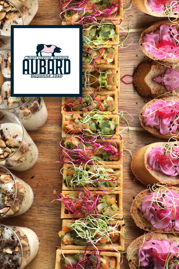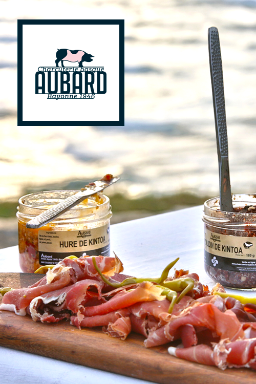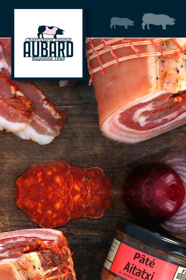 Depuis 3 générations, la charcuterie Aubard fabrique artisanalement son jambon de Bayonne (IGP), son jambon Kintoa (AOC) et ses spécialités charcutières, confits et salaisons basques à Bayonne. Très attachée à la qualité de ses produits, la charcuterie Aubard travaille uniquement avec des éleveurs du Pays Basque, dans le respect de la tradition familiale et d’un savoir faire artisanal.