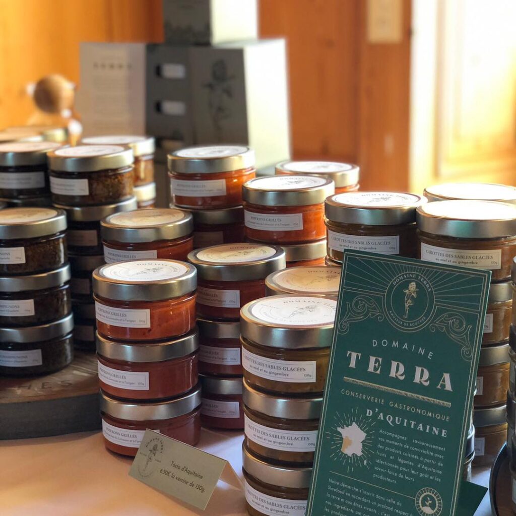 Asperges blanches des Landes, piment d’Espelette, vinaigre de cidre du Pays-Basque, farine de châtaigne du Limousin, sel de l’Ile-de-Ré, poivrons du Lot-et-Garonne, vin de l’Entre-deux-Mers, miel de Gironde, huile des Landes, piment fumé du Béarn, champignons de Charente, tomates de Marmande sont l’ADN de notre cuisine !