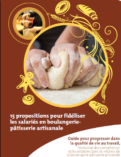 Le guide « 15 propositions pour fidéliser les salariés en boulangerie-pâtisserie » expose les enjeux de la fidélisation, les causes majeures expliquant les départs et présente 15 propositions, tirées de l’expérience d’artisans de Lorraine, comme leviers pour fidéliser les salariés (exemples : qualité des matériels et agencement des locaux, anticipation des pics d’activité, bonne gestion de la relation client, encouragement à la créativité, plaisir de réussir ensemble…).